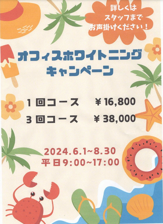 6月よりホワイトニングキャンペーンが始まりました。