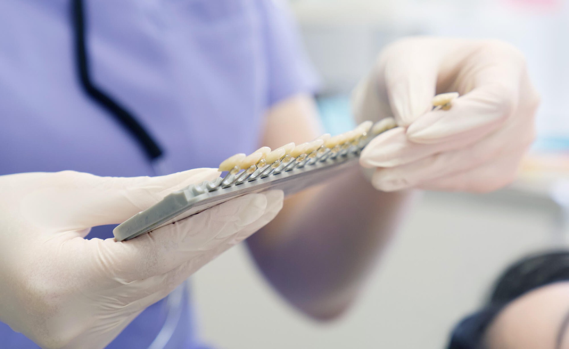現在の歯の色を色見本を用いて確認し、術前写真として記録しておきます。